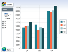 Chart FX OLAP includes an Analysis Bar that allows users to select dimensions to